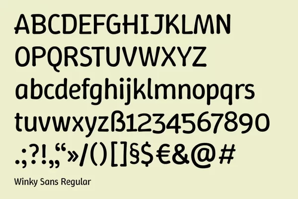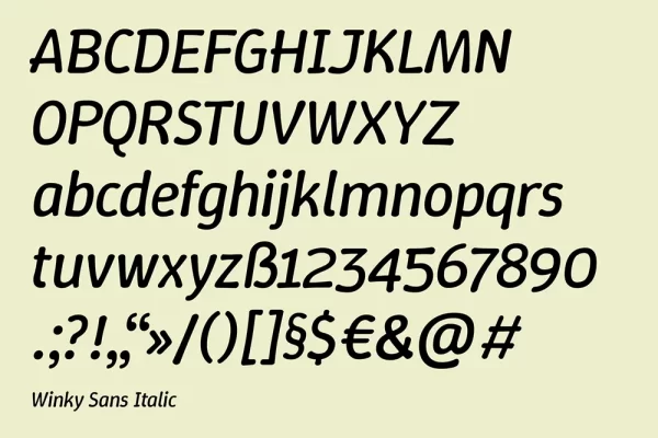Winky Sans looks like the sober, grown-up cousin of Comic Sans. Informal and personable, but not silly.Based on Aniva Sans, the letter shapes are rounded and thickened at the endings, and little irregularities were added, wich results in the impression of handwriting.