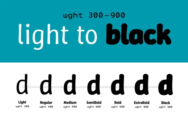 Winky Sans is a variable font with a weight axis that ranges from Light (300) to Black (900) and has matching italic styles. Watch out! Like flowing ink on paper the forms grows in all directions. While the slim weights might have been written with a fineliner, the black style look like ink blots from a broken pen.